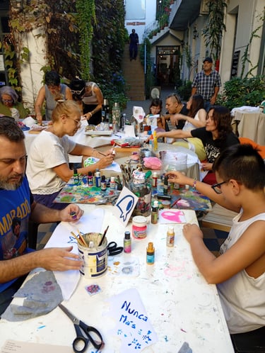 En el marco de la campaña impulsada por el CELS y Abuelas de Plaza de Mayo, desde Yara Bothrops nos propusimos habitar el espacio público para reflexionar sobre el sector cultural durante la dictadura. Junto a Zero Espacio Creativo y Chusma Chusmeta —dos proyectos liderados por mujeres locales—, impulsamos dos jornadas abiertas a la comunidad, tejidas con respeto, amor y memoria viva.