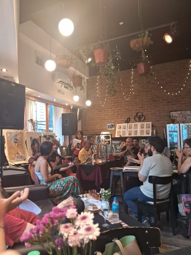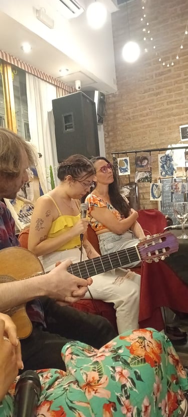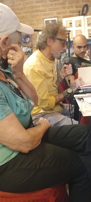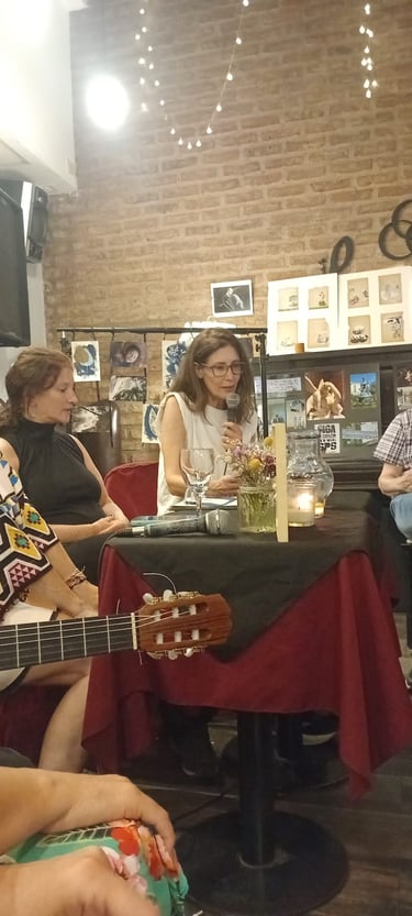 La palabra circuló con fuerza y diversidad. Contamos con la participación de Santi Lopez, quien nos trajo un texto con saltos temporales distópicos. Carlos Quevedo nos leyó un cuento de su autoria y expuso sus obras magníficas de collage. Miguel Angel Toscano nos compartió un texto de su primer libro de cuentos "Papel Picado". Por su parte, la autora chilena Cintia Arroyo, quien sumó su voz a una noche de intensidades nos endulzó con la historia de Isidro. También Victoria Severo leyó unas palabras llenas de detalles atentos sobre su experiencia en la Biblioteca Joaquín V. González de La Boca. Virginia Gallo nos compartíó un texto de su autoría muy sentido. Rosana Álvarez Mullner —psicoanalista y fotoperiodista— nos llamó a la reflexión con su texto "Capitalismo contra natura" sobre lo ambiental en esta era. Por otro lado, Jauri, nos conmovió con unas palabras sobre la potencia de creación de la raza humana. Cerró Yara Bothrops con un texto que fusiona, como una deriva, la naturaleza con lo erótico.