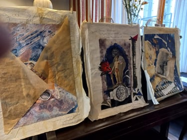 La propuesta visual llegó de la mano de Carlos Quevedo, Mónica Merite, Mónica Gomez Peirano y Mago_Azar, quienes nos deleitaron con sus collages hechos a mano.